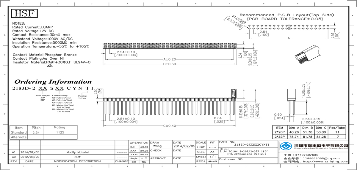 產(chǎn)品分類:PC 104連接器 產(chǎn)品型號:2.54 PC104 H=8.3+Housig 2*20P 雙排 180 DIP=12.2 排母 技術(shù)參數(shù):額定電流:2.0amp電流電阻:20m最大絕緣電阻:1000m承受電壓:AC 500V /分鐘工作溫度:40﹣℃+ 10