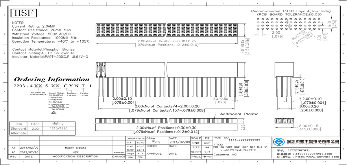 產(chǎn)品型號(hào):2.0 排母 4*30P 180° PA9T黑色 H=9.35 連接器聯(lián)豐盈