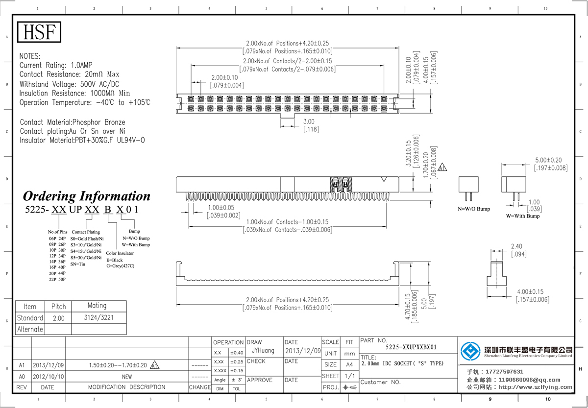 產(chǎn)品分類:IDC插座連接器 產(chǎn)品型號: 聯(lián)豐盈 供應(yīng)2.00 U型雙接觸 帶凸點 IDC 技術(shù)參數(shù):額定電流:1.0amp電流電阻:20m最大絕緣電阻:1000mmin耐壓:1000V AC /分鐘工作溫度:40﹣℃+ 105℃接觸