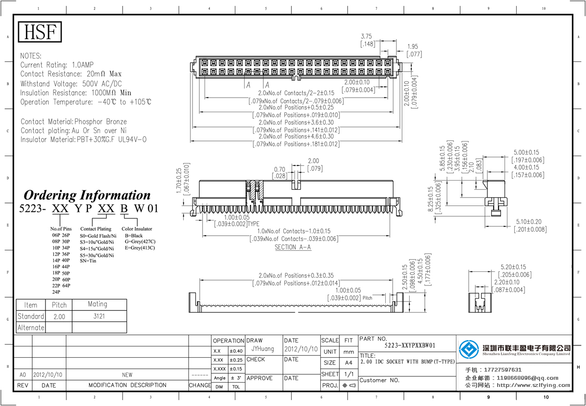 產(chǎn)品分類:IDC插座連接器 產(chǎn)品型號:2.0 TYCO 彈片型 帶凸點(diǎn) IDC 聯(lián)豐盈 供應(yīng) 技術(shù)參數(shù):額定電流:1.0amp電流電阻:20m最大絕緣電阻:1000mmin耐壓:1000V AC /分鐘工作溫度:40﹣℃+ 105℃接觸