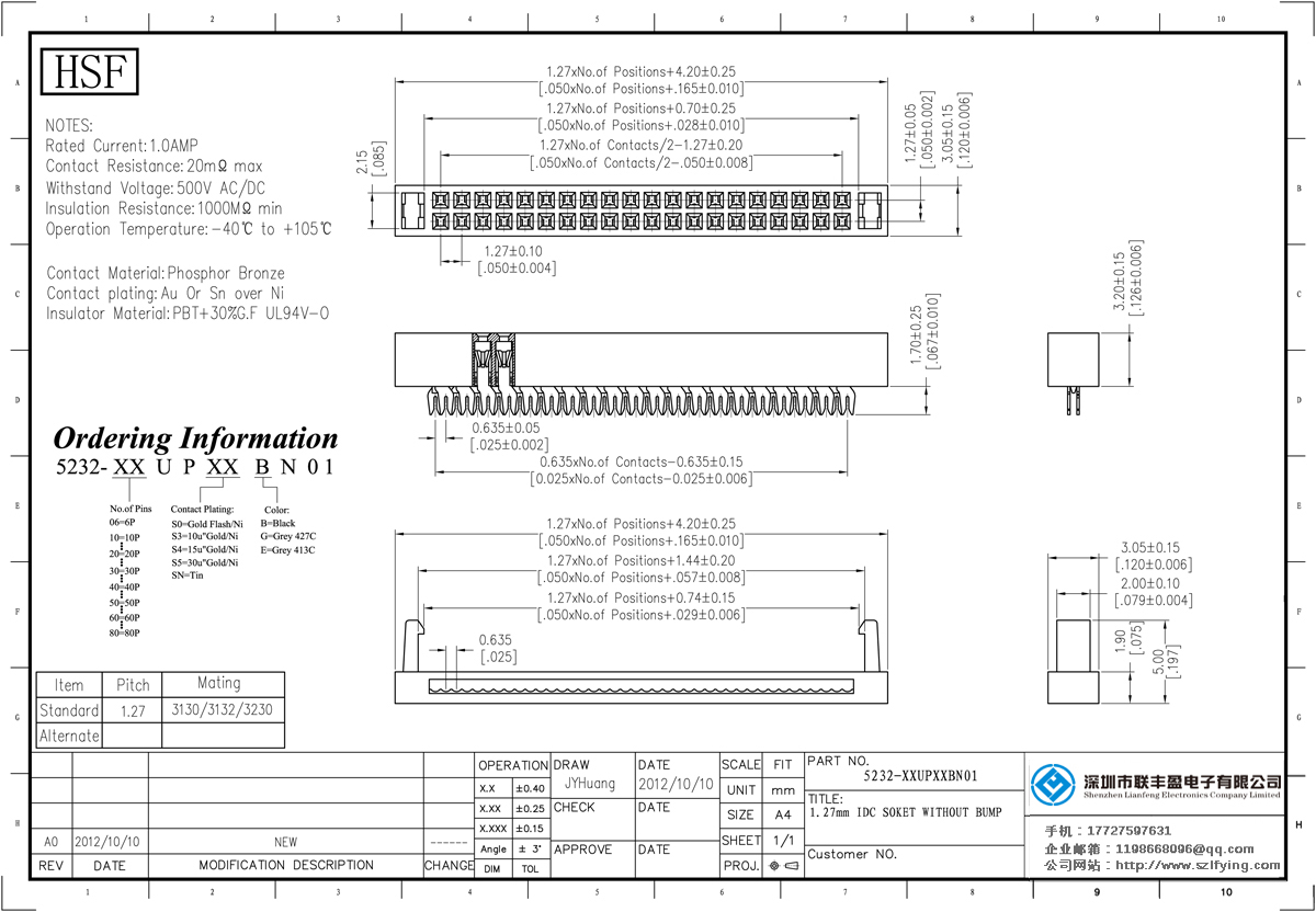 產(chǎn)品分類:IDC插座連接器 產(chǎn)品型號:1.27*1.27MM U型 磷銅 IDC 帶凸點 聯(lián)豐盈生產(chǎn) 技術(shù)參數(shù):額定電流:1.0amp電流電阻:20m最大絕緣電阻:1000mmin耐壓:1000V AC /分鐘工作溫度:40﹣℃+ 105℃