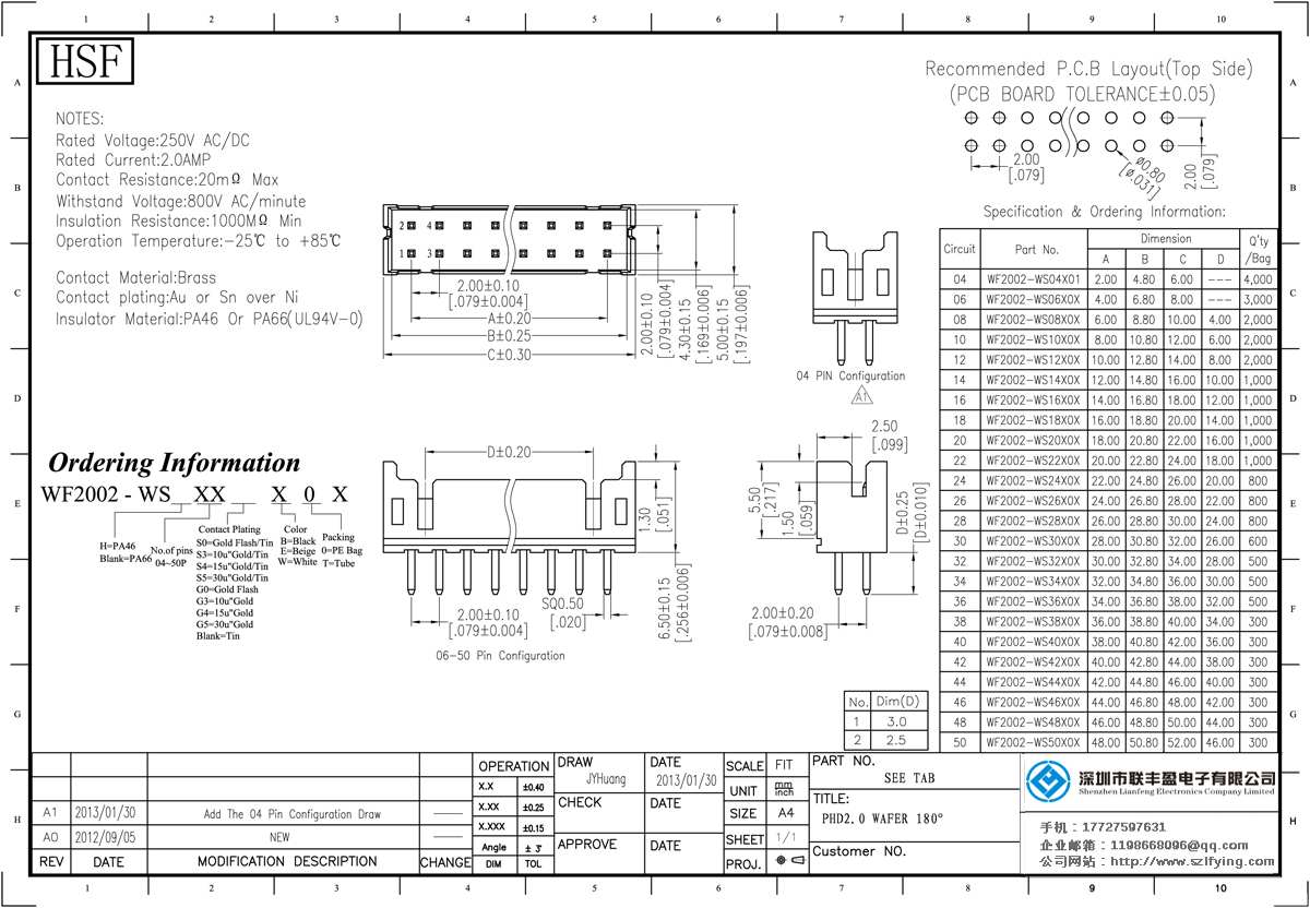 產(chǎn)品分類:Wafer連接器 產(chǎn)品型號:2.0MM 間距 housing 供應(yīng)商 技術(shù)參數(shù):電流1.0amp:接觸電阻:20m最大絕緣電阻:1000mmin耐壓:800V的交流電源/分鐘operyion溫度:25℃+ 85℃接觸材料:黃銅觸點