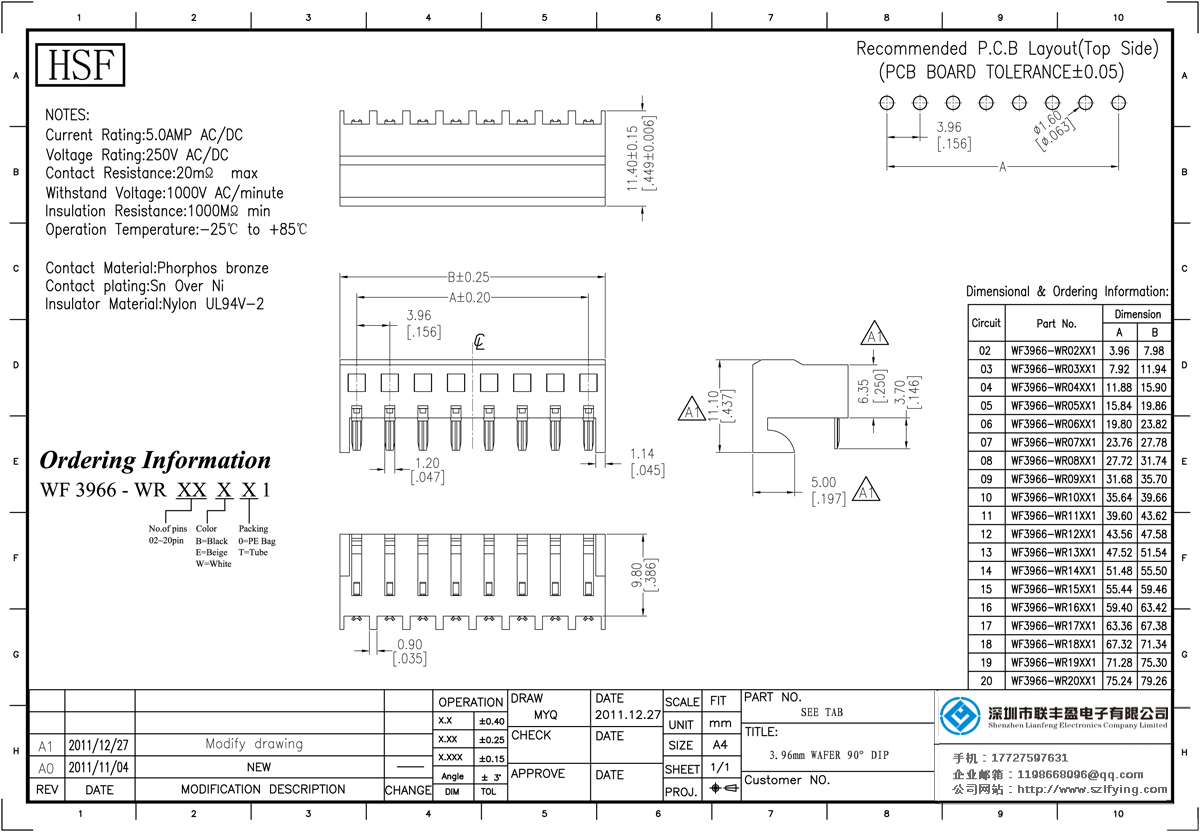 產(chǎn)品分類:Wafer連接器 產(chǎn)品型號(hào):3.96MM 90SMT Wafer 廠家 制造 技術(shù)參數(shù):額定電流:5.0amp接觸電阻:20m最大絕緣電阻:1000m min 承受voltange:1000V AC /分鐘工作溫度:25℃+ 85℃接觸材料:黃銅