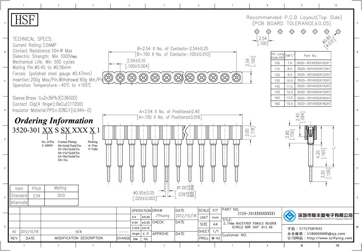 產(chǎn)品分類:圓孔排針排母連接器 產(chǎn)品型號(hào):2.54MM 單排 S/T 端子長(zhǎng):10.3MM 圓孔排母 生產(chǎn) 技術(shù)參數(shù):額定電流:3.oamp接觸電阻:1om最大介電強(qiáng)度:MIN 1000vrms機(jī)械壽命:最少500次交配銷:0