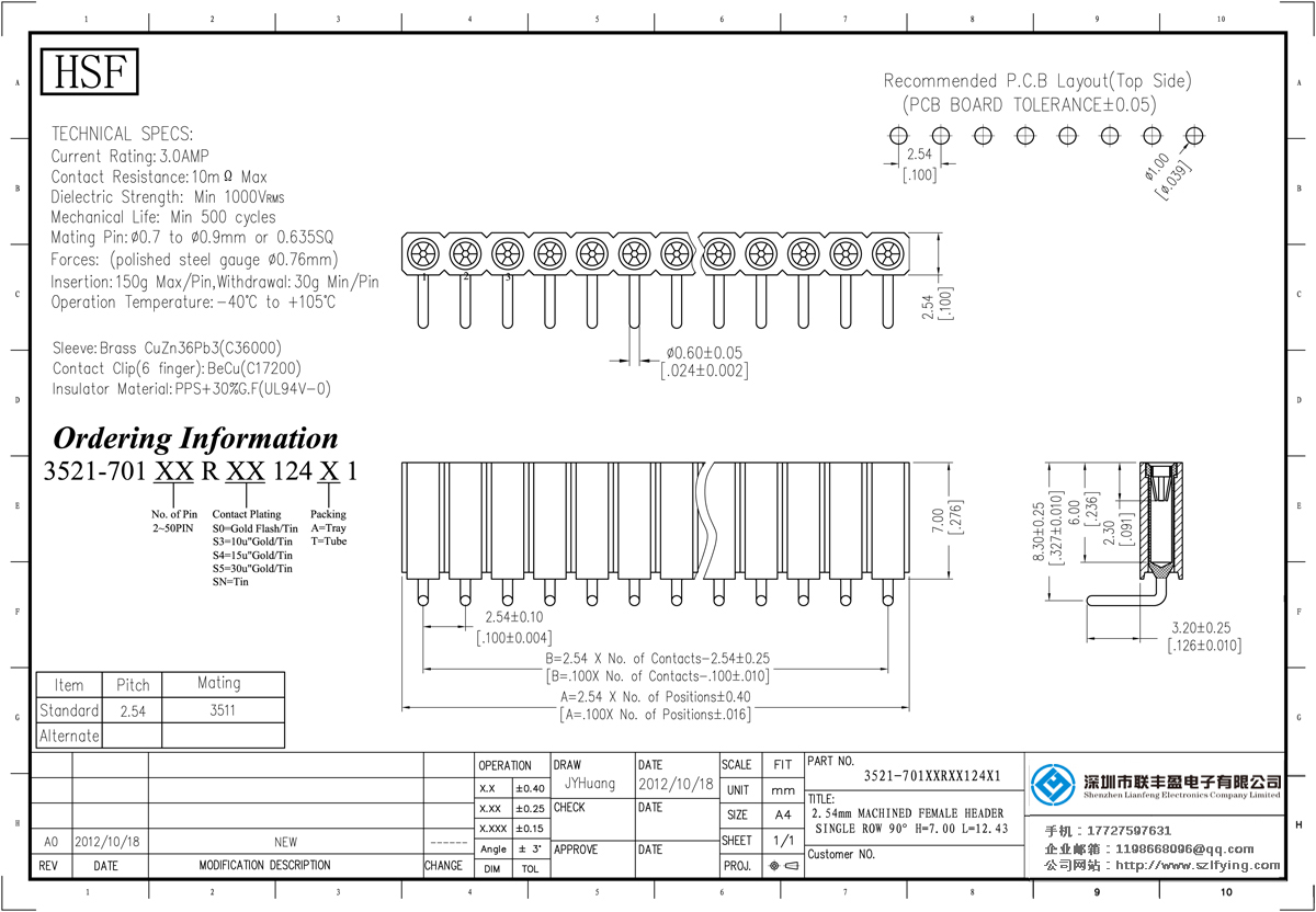 產(chǎn)品分類:圓孔排針排母連接器 產(chǎn)品型號(hào):2.54MM 單排 H=7.0 90度彎插 圓孔排母 聯(lián)豐盈廠家 技術(shù)參數(shù):額定電流:3.oamp接觸電阻:1om最大介電強(qiáng)度:MIN/1000vrms機(jī)械壽命:最少500次交配引腳