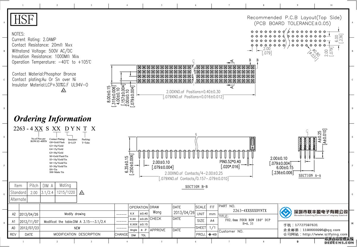 產(chǎn)品分類:排母連接器 產(chǎn)品規(guī)格:聯(lián)豐盈 耐高溫 2.0MM 四排 180DIP 排母 產(chǎn)品介紹:額定電流:2.0amp電流電阻:20m最大絕緣電阻:1000m民承受電壓:AC 500V /分鐘工作溫度:55﹣℃+ 125℃接觸