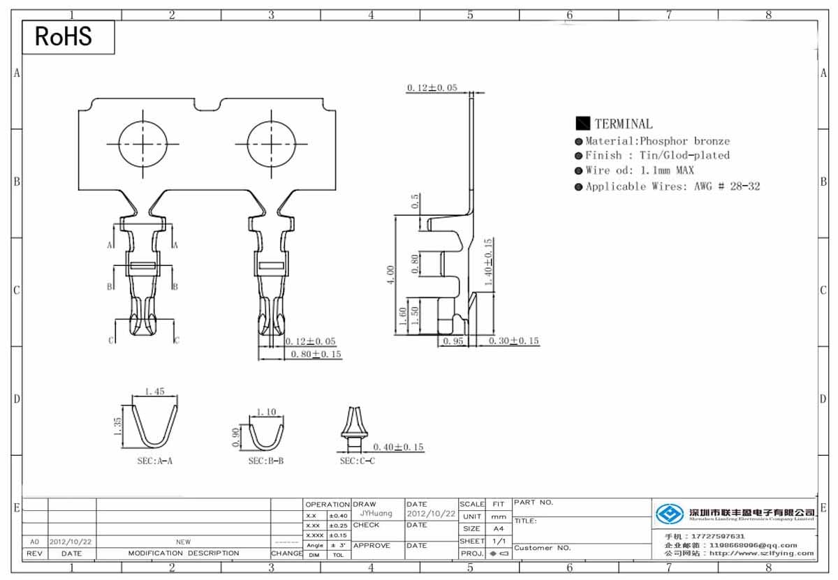 - 端子(Terminal):Phosphor Bronze