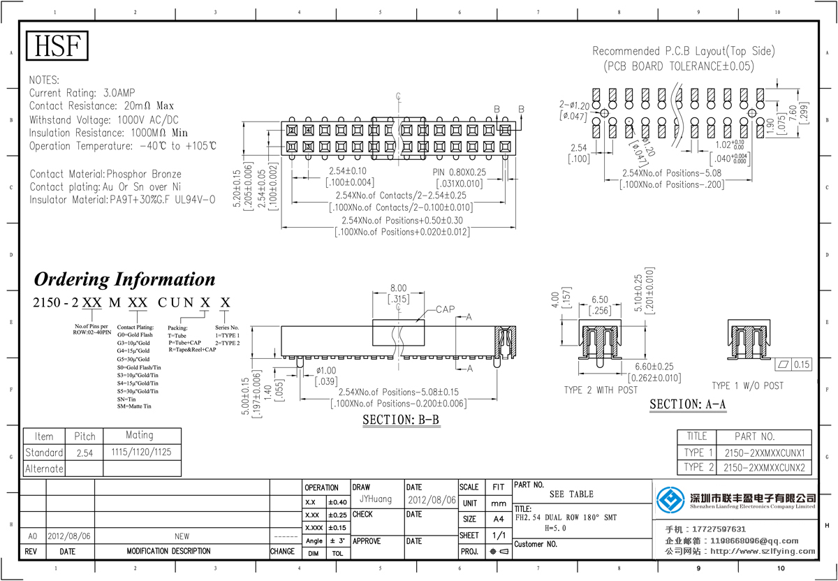 產(chǎn)品分類:排母連接器 產(chǎn)品規(guī)格:聯(lián)豐盈 2.54MM H=5.0MM 雙排 180 SMT 排母 直銷 產(chǎn)品介紹:額定電流:3.0amp電流電阻:20m最大絕緣電阻:1000mmin耐壓:1000V AC /分鐘工作溫度:40﹣℃+ 105℃接