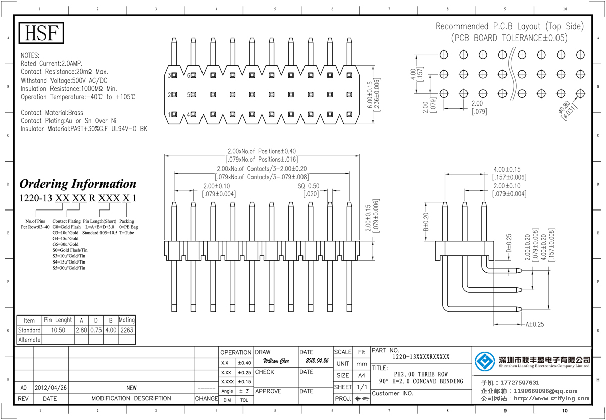 產(chǎn)品分類:排針連接器 產(chǎn)品規(guī)格:2.0MM 單層三排 90度彎插 排針 聯(lián)豐盈 產(chǎn)品介紹:額定電流:2.0amp電流電阻:20m最大絕緣電阻:1000m民承受電壓:AC 500V /分鐘工作溫度:40﹣℃+ 105℃接觸