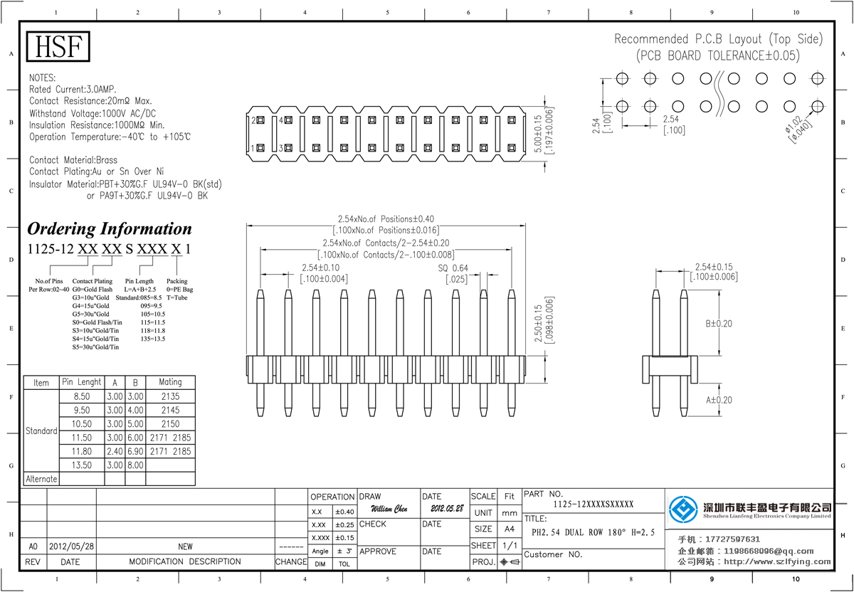 產(chǎn)品分類:排針連接器 產(chǎn)品規(guī)格:聯(lián)豐盈 2.54MM 雙排 180DIP 排針 產(chǎn)品介紹:額定電流:3.0amp電流電阻:20m最大絕緣電阻:1000m民承受電壓:AC 500V /分鐘工作溫度:40﹣℃+ 105℃接觸材料:
