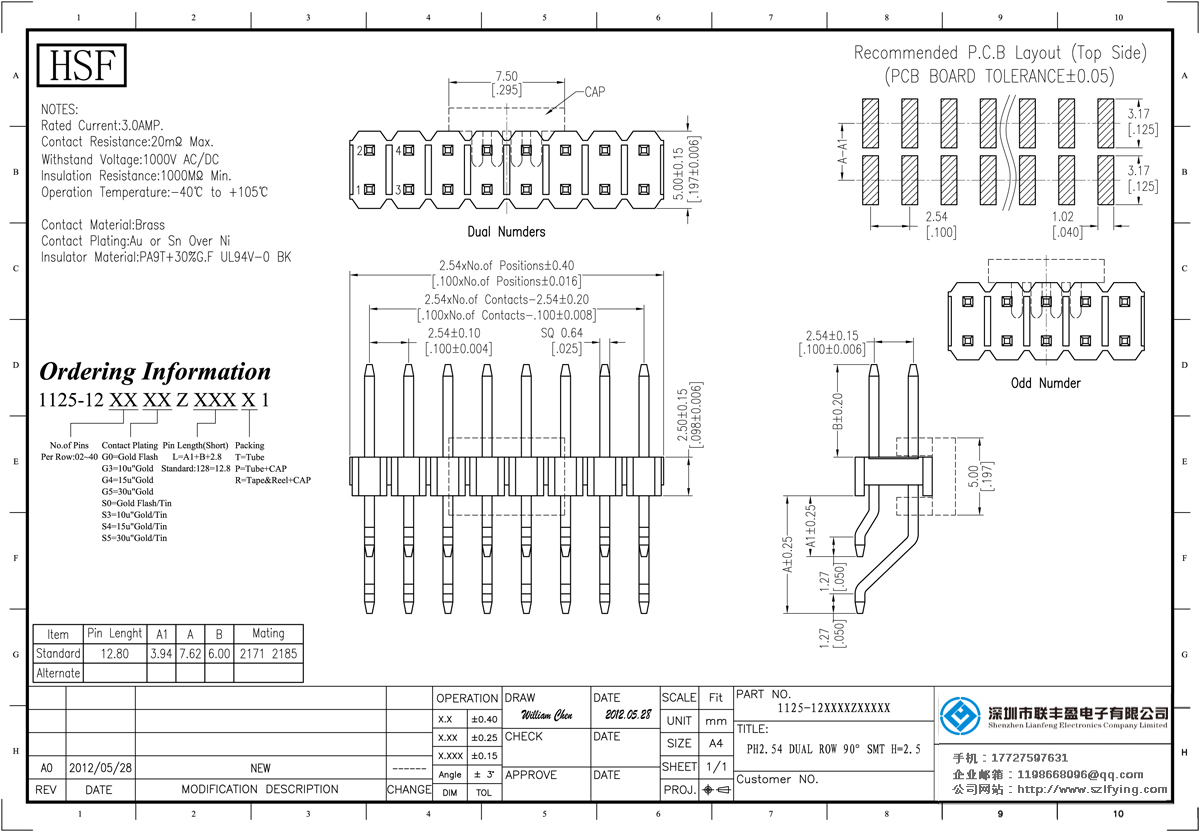 產品分類:排針連接器 產品規(guī)格:2.54MM 單層雙排 彎針 排針 聯豐盈 直銷 產品介紹:額定電流:3.0amp電流電阻:20m最大絕緣電阻:1000m民承受電壓:AC 500V /分鐘工作溫度:40﹣℃+ 105℃接