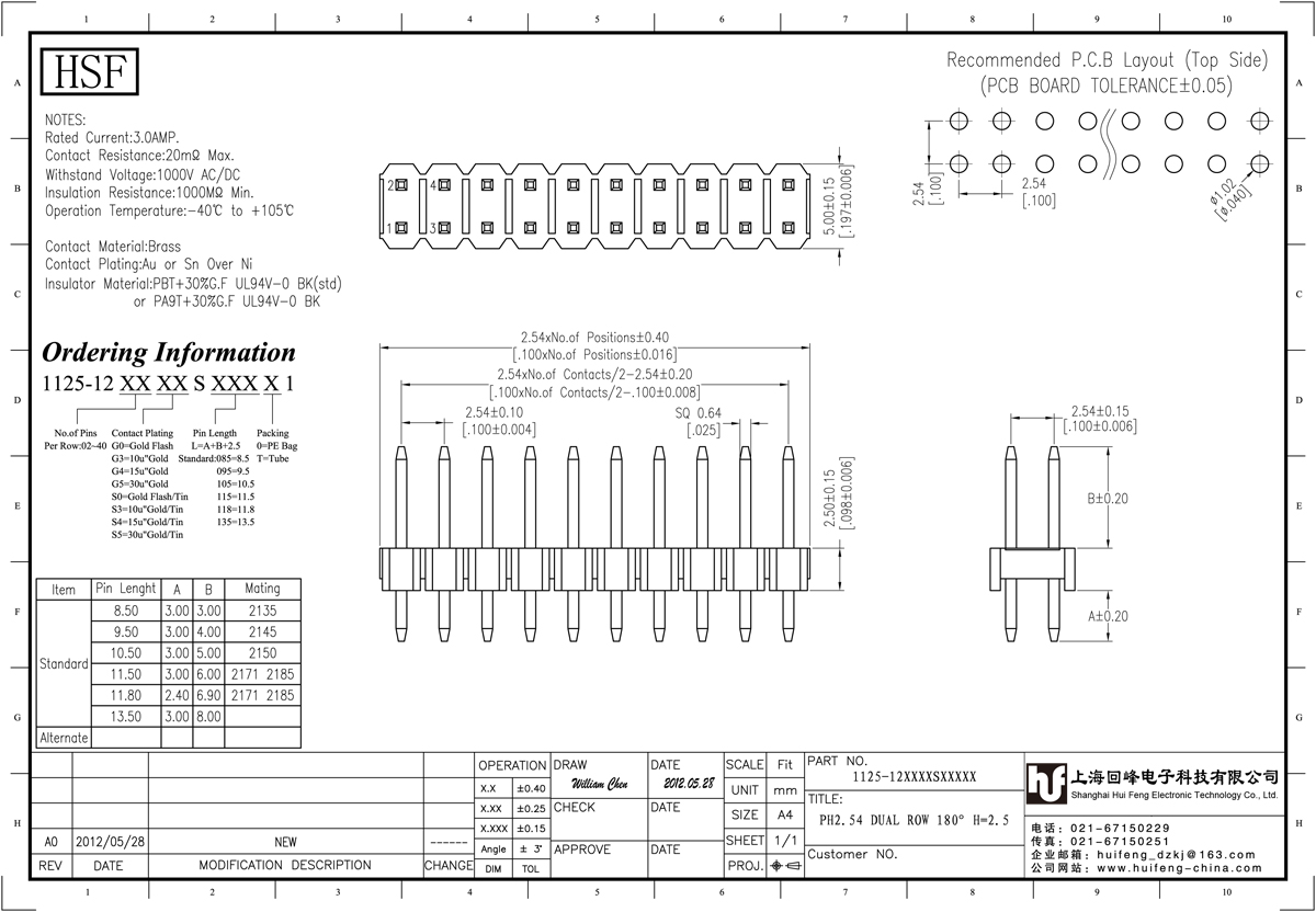 產(chǎn)品分類:排針連接器 產(chǎn)品規(guī)格:排針 2.54MM 單層雙排 180DIP 聯(lián)豐盈 產(chǎn)品介紹:額定電流:3.0amp電流電阻:20m最大絕緣電阻:1000m民承受電壓:AC 500V /分鐘工作溫度:40﹣℃+ 105℃接觸材