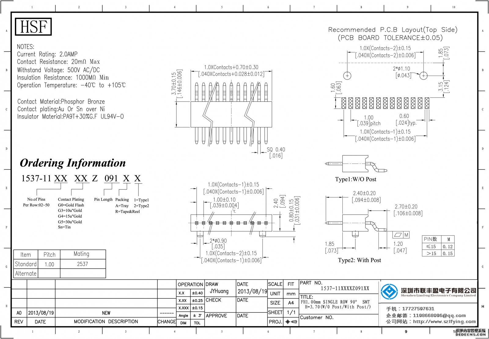 產(chǎn)品分類:排針連接器 產(chǎn)品規(guī)格:1.0MM 單層單排 彎針 排針 廠家 技術(shù)參數(shù):額定電流:0.75amp電流電阻:20m最大絕緣電阻:1000m承受電壓:AC 500V /分鐘工作溫度:40﹣℃+ 105℃接觸材料: