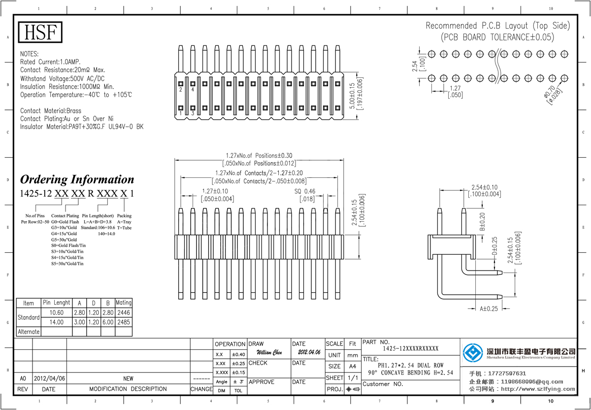 產(chǎn)品分類:排針連接器 產(chǎn)品規(guī)格:1.27*2.54mm 單層雙排 90 彎插 插板型 排針 連接器 產(chǎn)品介紹:1425 - 12xxxxrxxxxx電流:電流:20m評級1.0AMP電阻絕緣電阻值:最大耐受電壓500V 1000m分鐘:AC /分