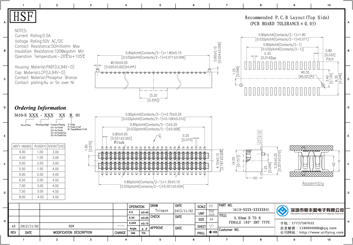 產(chǎn)品分類:Board To Board 連接器 產(chǎn)品型號:0.8MM 加夾持蓋 Board To Board 聯(lián)豐盈 技術(shù)參數(shù):額定電流:0.5amp電流電阻:30m最大絕緣電阻:100m承受電壓:AC 500V /分鐘工作溫度:40﹣℃+ 105℃接