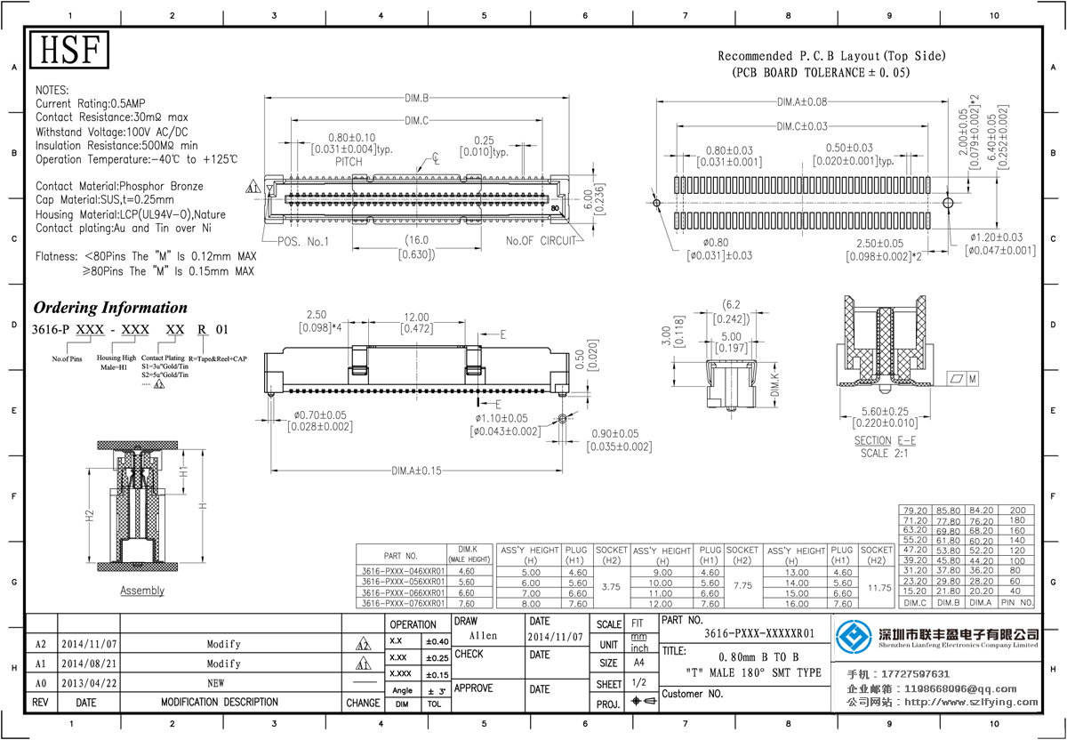 產(chǎn)品分類:Board To Board 連接器 產(chǎn)品型號:聯(lián)豐盈 0.8MM 公座 BTB T型 Board To Board 技術(shù)參數(shù):額定電流:0.5amp電流電阻:30m最大絕緣電阻:100m承受電壓:AC 500V /分鐘工作溫度:40﹣℃+ 105℃