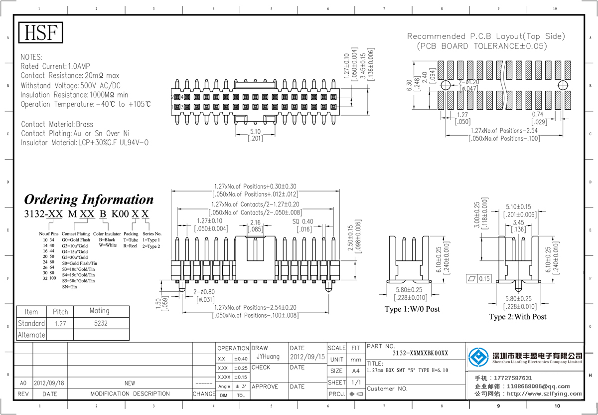 產(chǎn)品分類:簡(jiǎn)易牛角連接器 產(chǎn)品型號(hào):聯(lián)豐盈 1.27MM Samtec型 180SMT ,滿PIN 簡(jiǎn)牛 生產(chǎn) 技術(shù)參數(shù):額定電流:1.0amp電流電阻:20m最大承受電壓:500V的交流/直流絕緣電阻:1000分鐘操作溫度