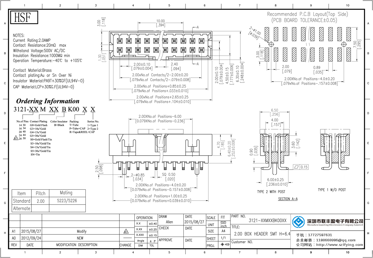 產(chǎn)品分類:簡易牛角連接器 產(chǎn)品型號:耐高壓 2.0MM TYCO型 180SMT 簡牛 廠家 技術(shù)參數(shù):額定電流:2.0amp電流電阻:20m最大承受電壓:500V的交流/直流絕緣電阻:1000分鐘操作溫度:40﹣℃